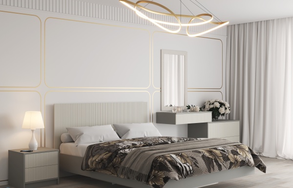 Практичность и стильный, универсальный дизайн этой спальни позволяют гармонично вписаться в любые интерьеры, будь то просторная спальня или компактная студия.